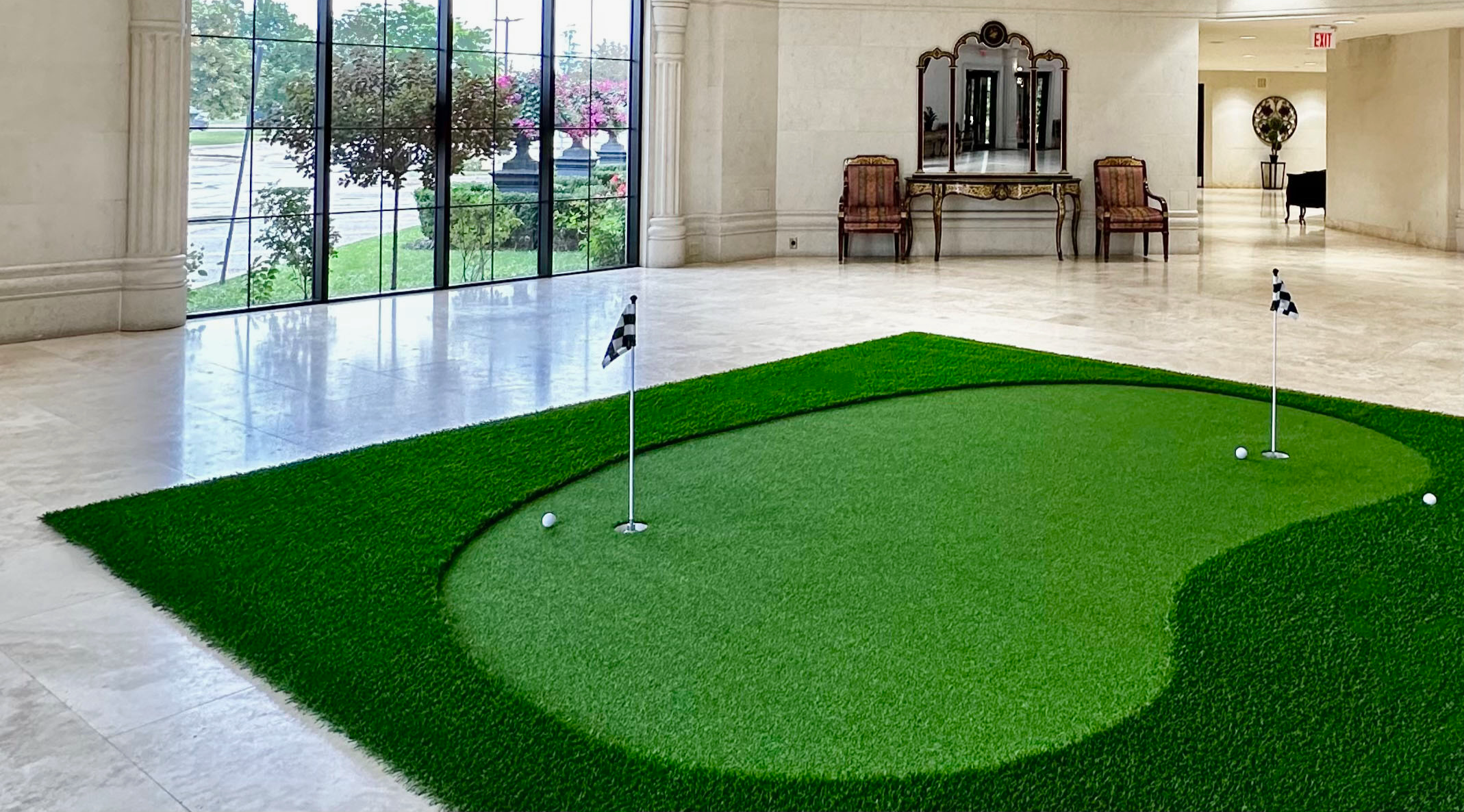 Bring the game anywhere with our premium portable golf course rentals. Designed for events, estates and venues, these modular courses offer professional playability, elegant design and quick setup—delivering a unique, high-end experience without the upkeep of a traditional green.